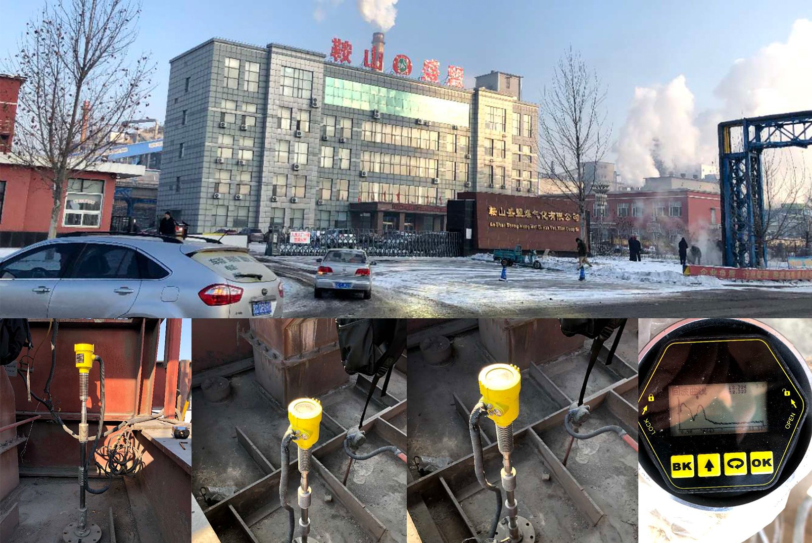 • 山東鋁業該現場主要主要以測量污水、水泥漿液為主,大多部多有攪拌、蒸汽,選購 RBRD17 共計 32 臺。罐內有攪拌槳,攪拌槳一下液位無法測量,因雷達安裝正下方是有攪拌葉片,且葉片寬度、層數比較多,所以無法測量?,F場蒸汽比較大?,F場安裝圖?,F場安裝圖,安裝位置為罐子直徑四分之一處?,F場安裝圖?,F場環境圖。現場安裝圖